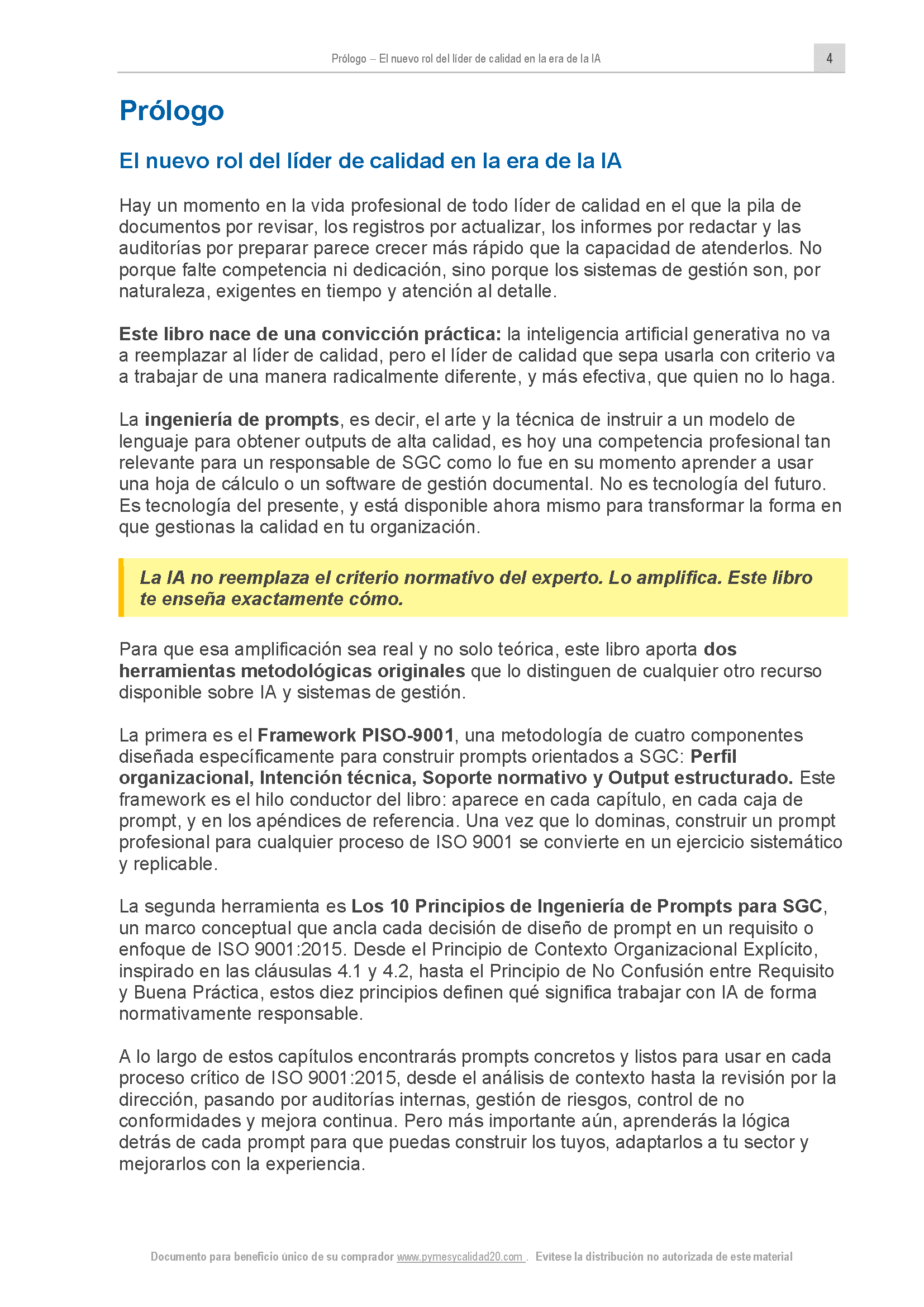 He documentado este método paso a paso en un ebook de 170 páginas que incluye la mayor colección de prompts profesionales para gestión de calidad.