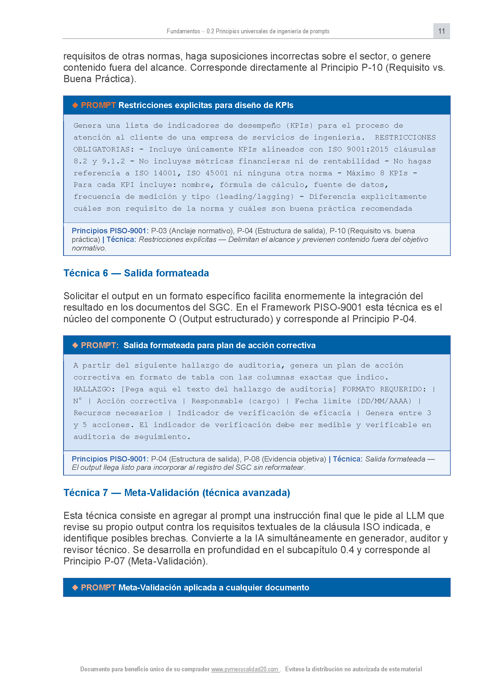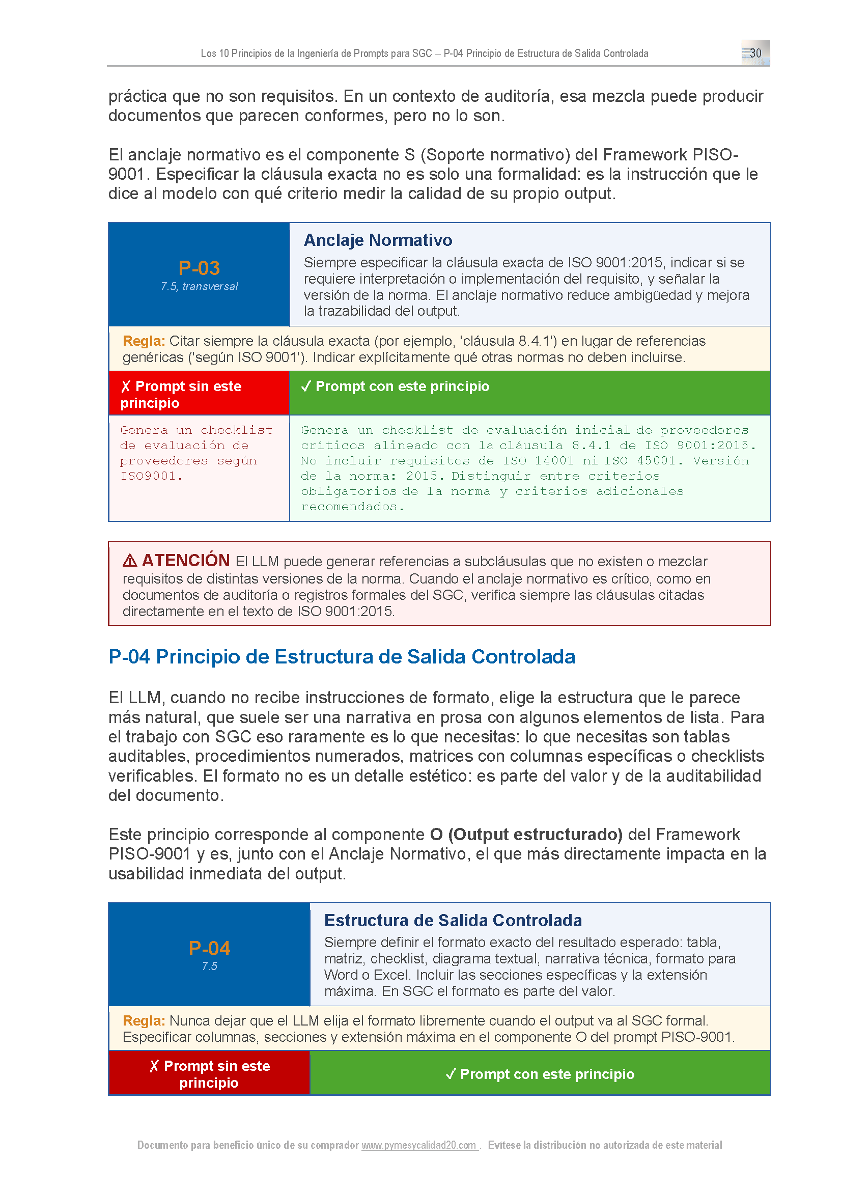 Encontrarás más de 100 prompts organizados cláusula por cláusula para ISO 9001:2015, listos para copiar, adaptar y ejecutar con criterio normativo.