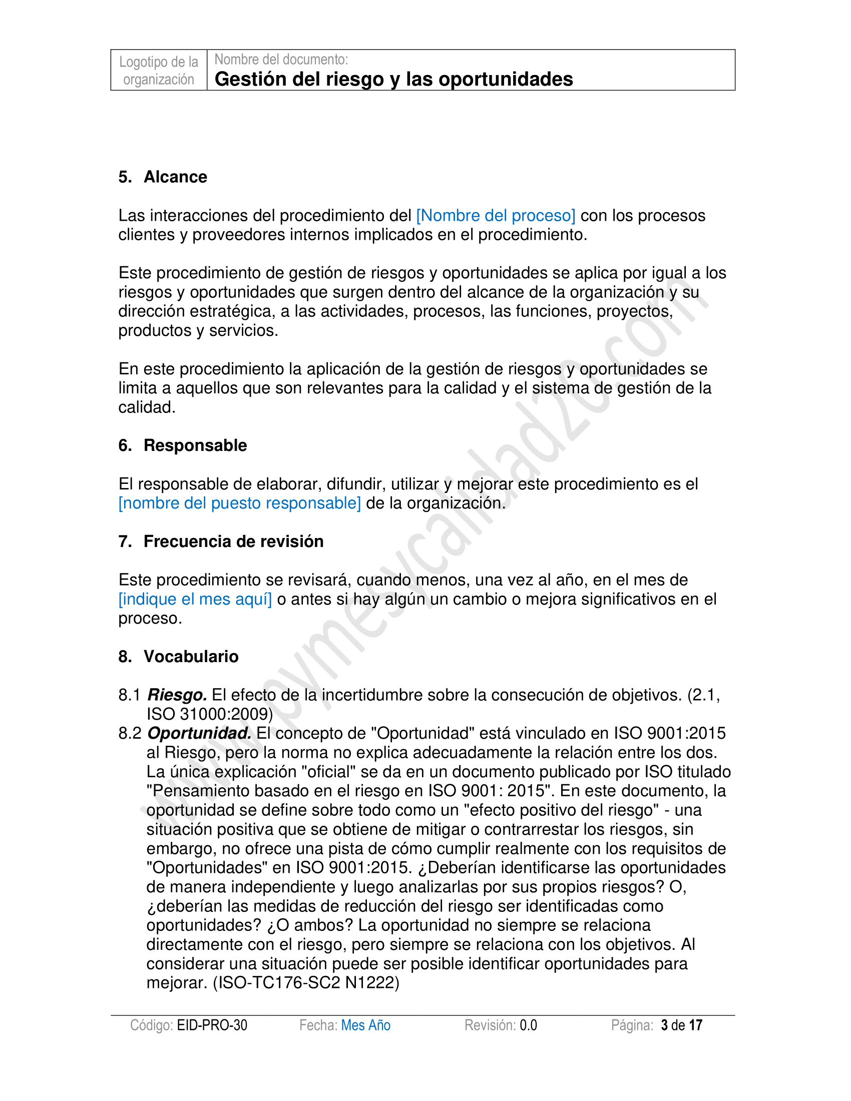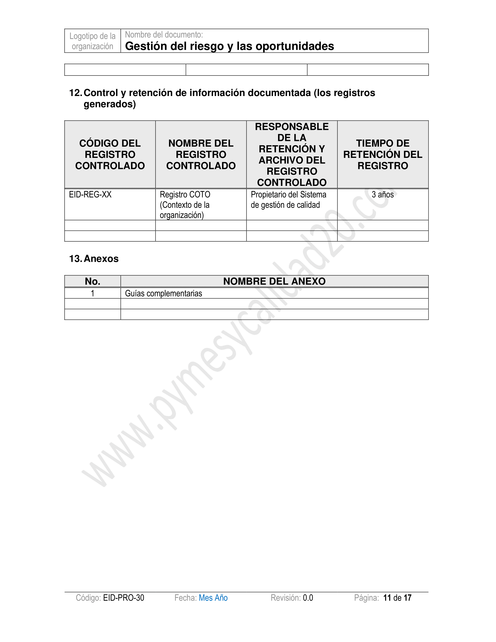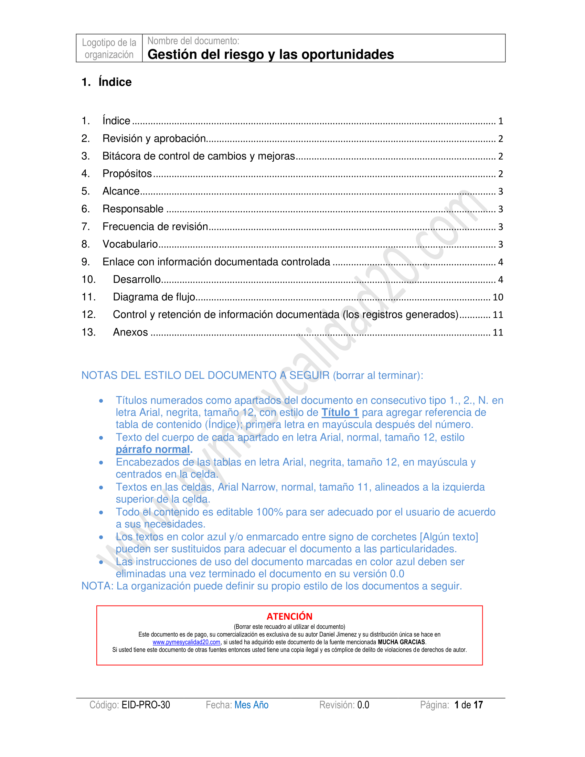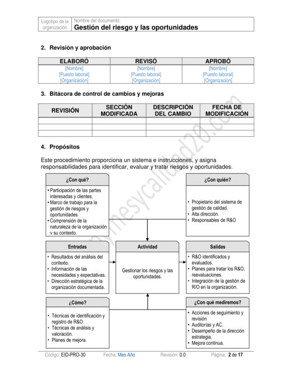 - Contará son un procedimiento para determinar los riegos y oportunidades en su organización y será capaz de documentar planes de mejora para tratarlos con formatos calificados.