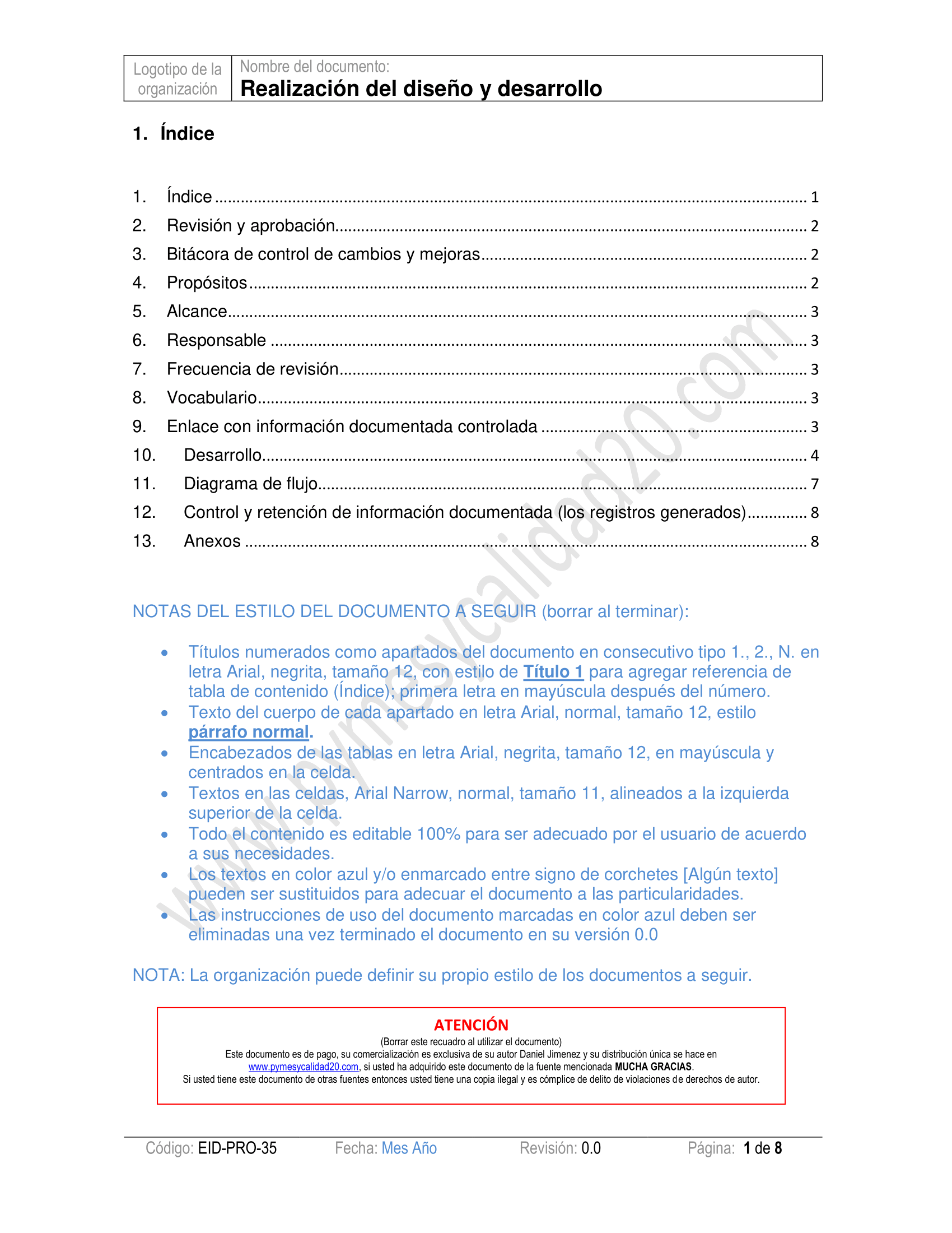 - va a documentar un sistema de calidad y no tienes idea de cómo empezar.