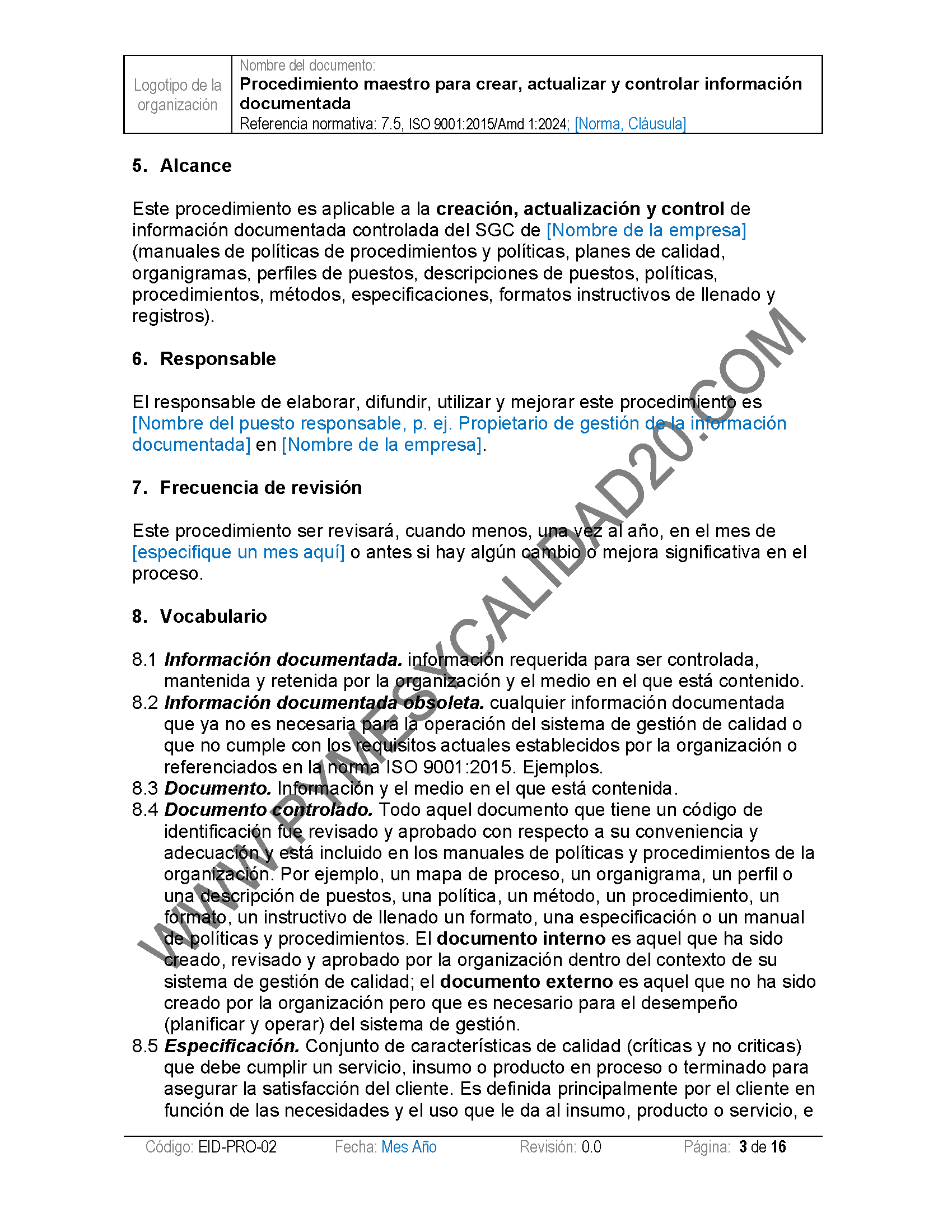 - Definiciones Claras: Cada documento incluye definiciones sencillas de términos clave como «información documentada», «revisión de la gestión», «no conformidad mayor» y «acción correctiva», garantizando una comprensión total de la norma.