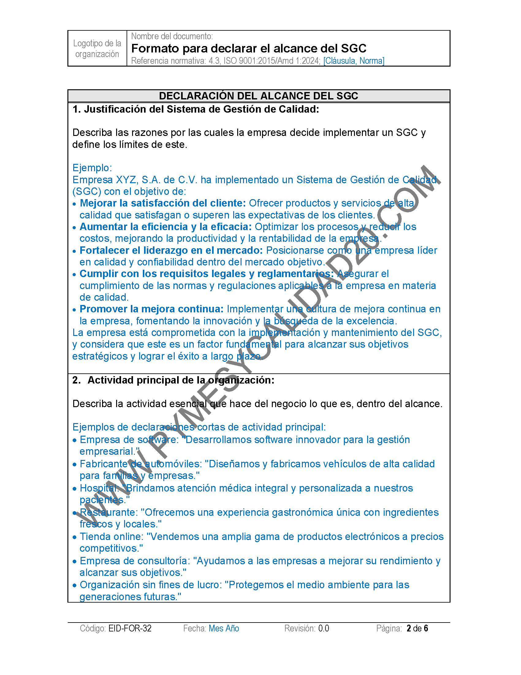 - Manual de Calidad: Documento que describe el sistema de gestión de calidad y su aplicación en tu organización, contarás con tres formatos diferentes.