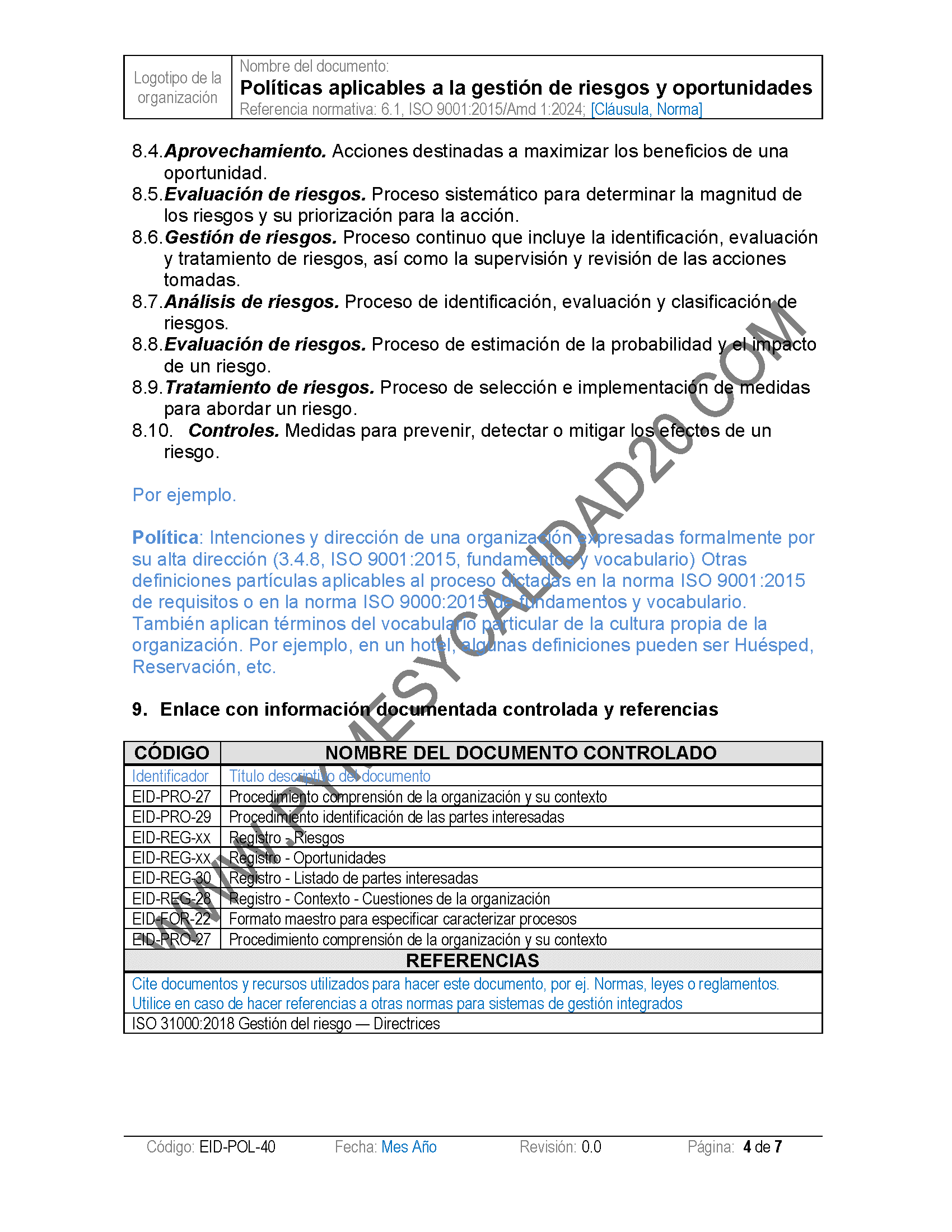 - Información Documentada Simplificada: Deja de preocuparte por qué información documentada «mantener» y cuál «retener», simplemente sigue instrucciones claras y además personaliza tus documentos de forma fácil.