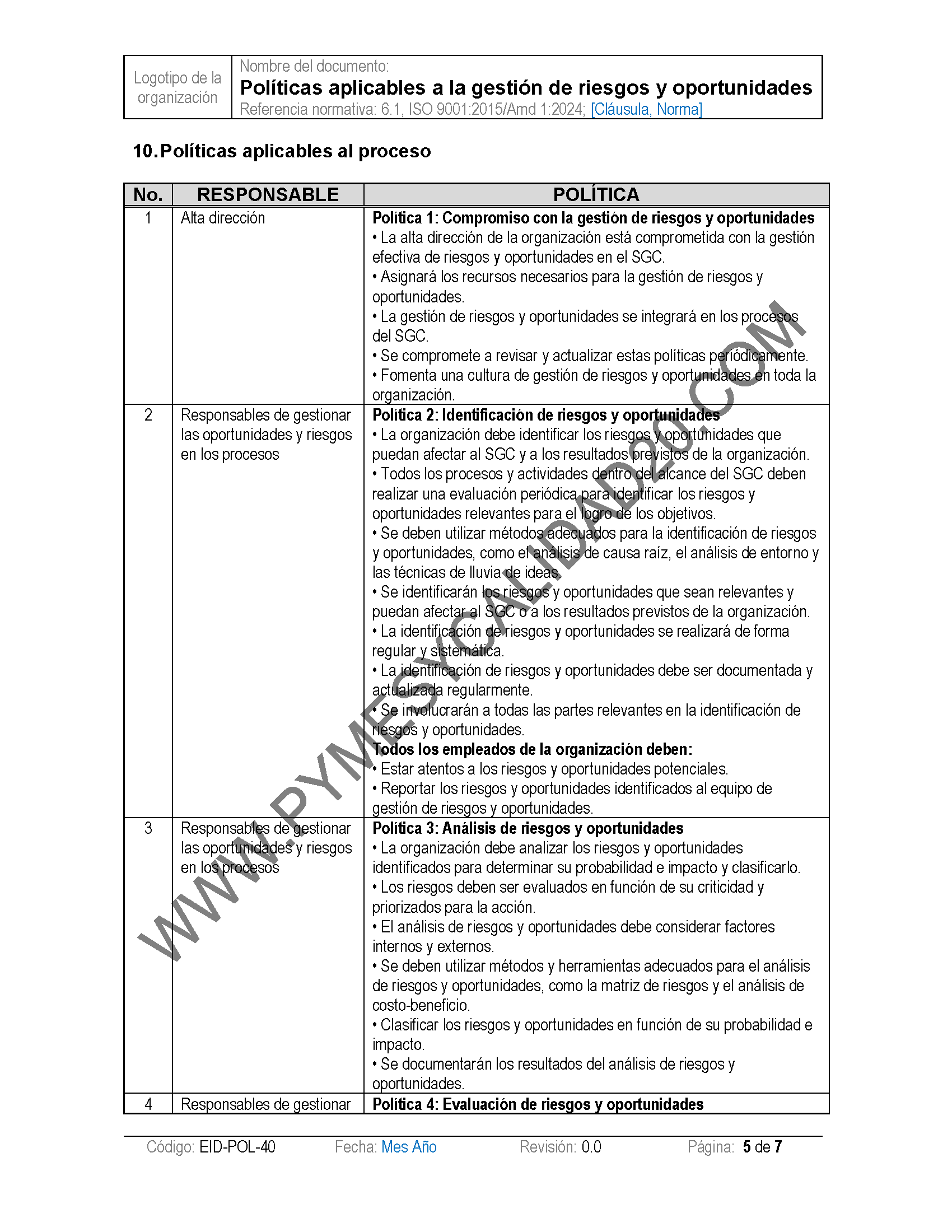 - Riesgos y Oportunidades: Podrás determinar y documentar riesgos y oportunidades con procedimientos, formatos y planes de mejora.