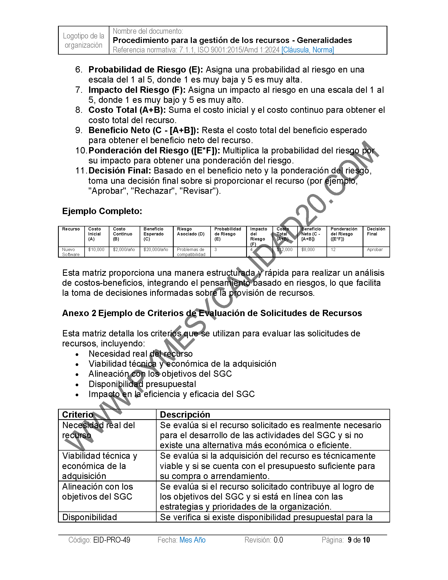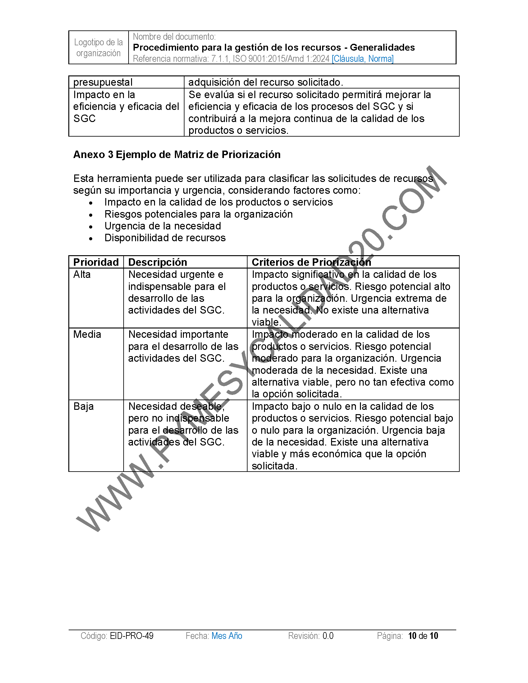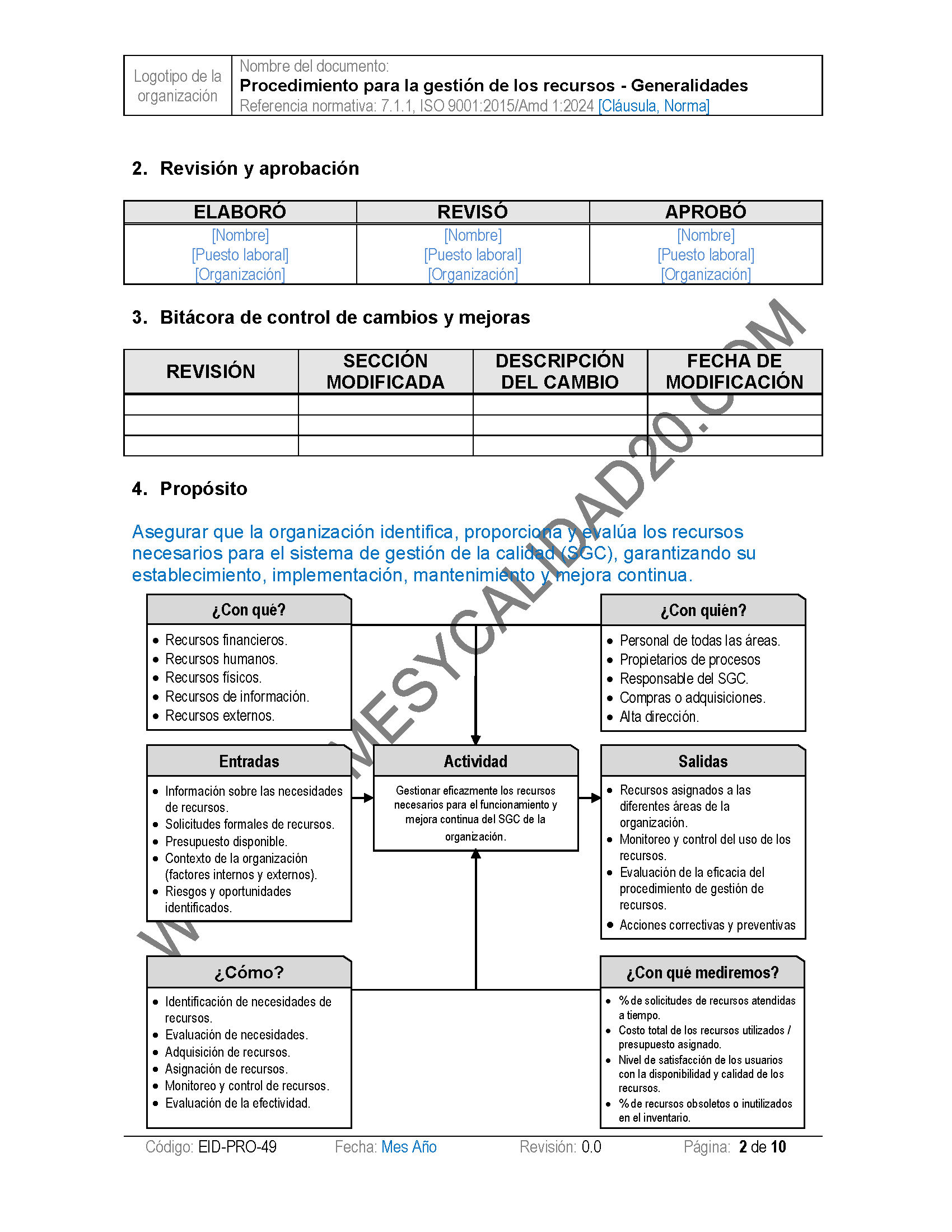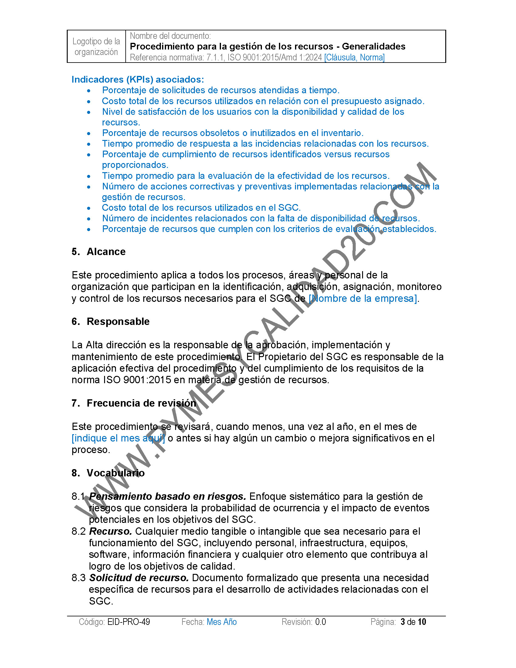 - Procedimientos: Tendrás acceso a una colección completa de procedimientos estandarizados que cubren todas las áreas críticas del SGC. Estos documentos están listos para ser personalizados según las necesidades únicas de tu organización. :