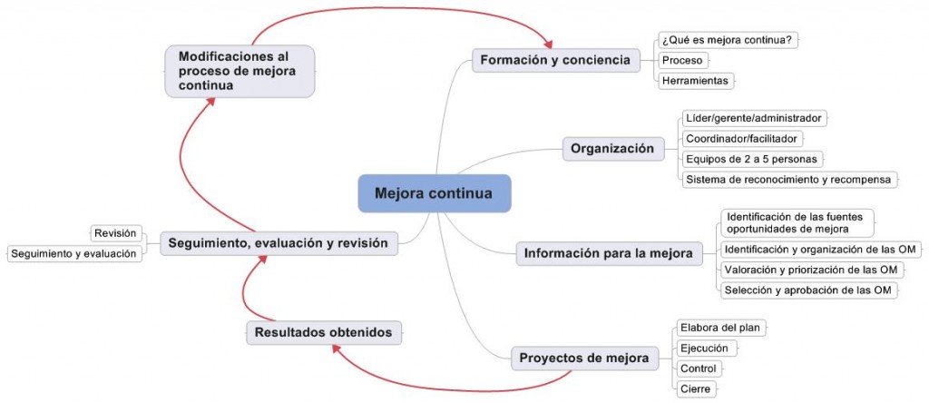 La Mejora Continua es una filosofía de trabajo y de vida, que apunta al desafío permanente de las metas establecidas para alcanzar niveles superiores de eficacia y eficiencia que logren la satisfacción y el deleite de los clientes y de las personas que necesitan de nosotros, junto con mejores resultados para la pyme, la comunidad y una mejor calidad de vida para los empleados.