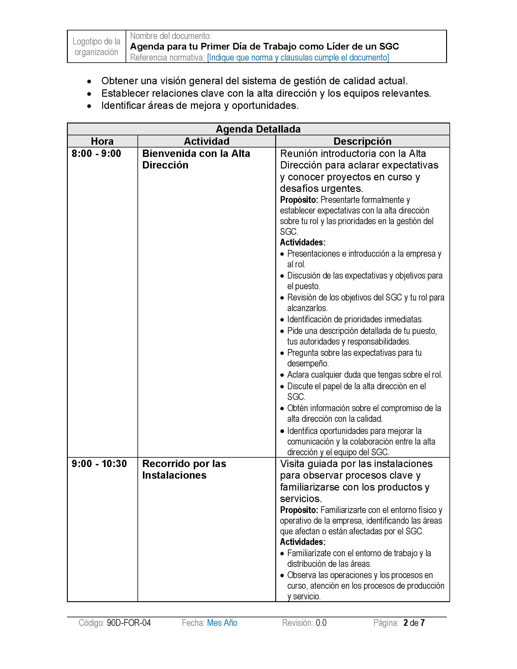 - Formato de Plan de Trabajo Mensual: Detalla objetivos y actividades esenciales para cada fase de los primeros 90 días.