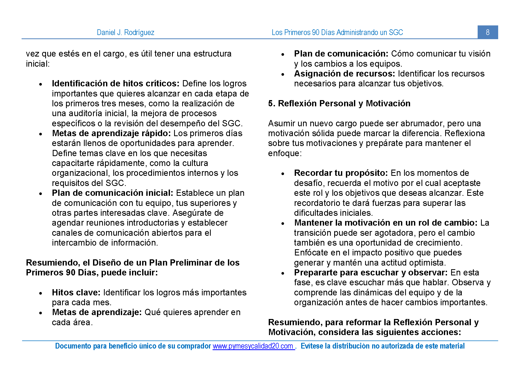«Los primeros 90 días administrando un SGC ISO 9001:2015» es la guía práctica que necesitas para comenzar con éxito en tu nuevo rol. Inspirado en las estrategias de Michael D. Watkins y adaptado al contexto de la gestión de calidad, esta guía te ayudará a generar resultados y valor desde el primer día.